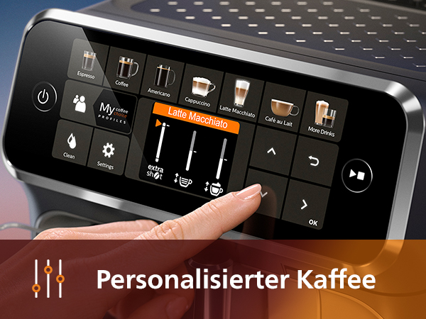- Intuitive TFT display: Easily select your drink with this espresso machine's user-friendly touchscreen – with the Coffee Customiser, you can adjust the aroma strength and coffee quantity
